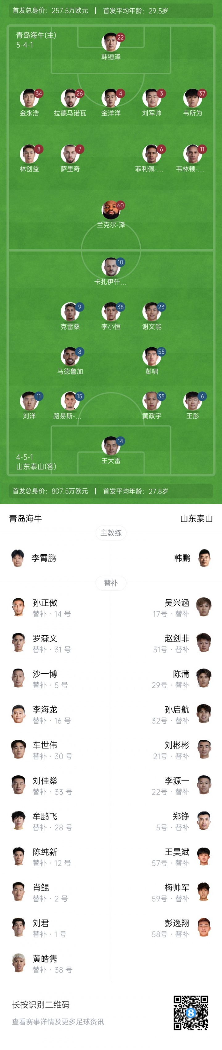 在这秋意渐浓的时节,中超联赛第25轮如期而至,今夜20点,青岛海牛与山东泰山这对宿敌将在沙场相遇。两队在这场比赛前,纷纷公布了各自的首发阵容,旨在力图在绿茵场上再创辉煌。