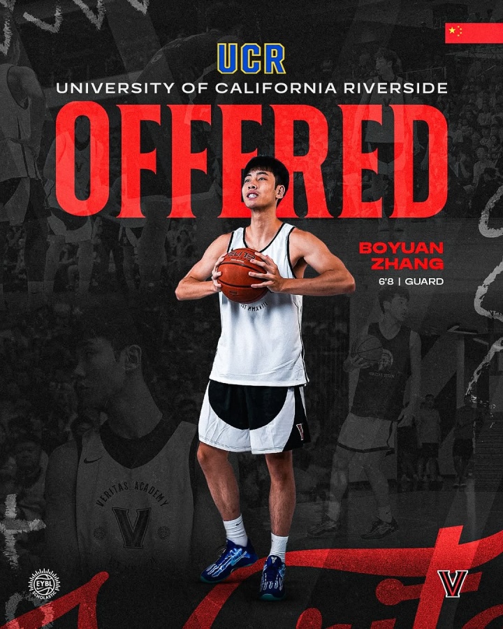 美国高中篮球队Veritas Academy于9月21日在官方社交媒体上发布了激动人心的消息,队员们收到了多个NCAA学校的录取通知,其中备受瞩目的中国球员、来自山西队的新星张博源喜获加利福尼亚大学河滨分校的一级联盟offer,这也是他首个获得的NCAA一级联盟学校的录取。